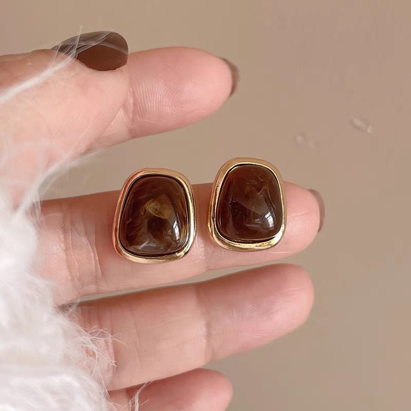 Σκουλαρίκια καφέ πέτρες χρυσό